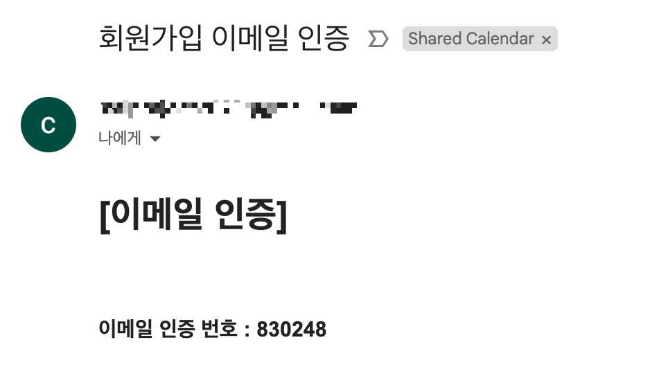 Service 단은 위와 같이 구현하고, Controller에서 해당 로직들을 적절하게 사용하면 다음과 같이 인증 코드가 전송된다.