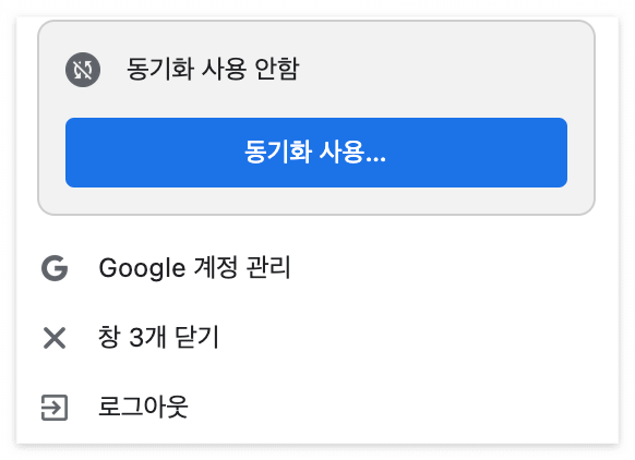 1. google 로그인을 하고 Chrome의 메인 페이지에서 프로필 사진을 누르면 위 사진처럼 여러 항목이 보인다.