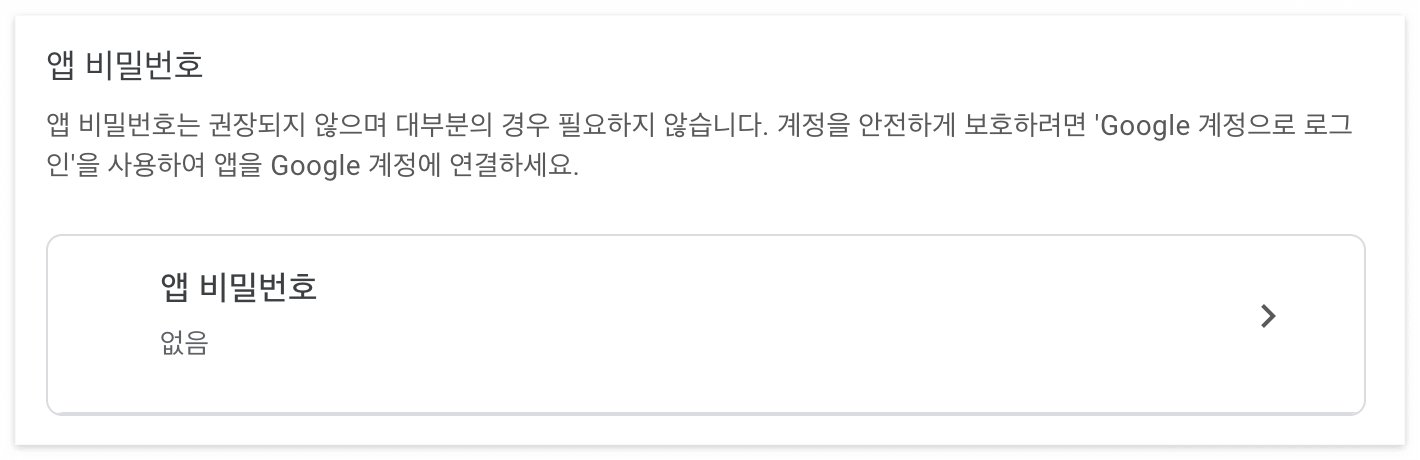 3. 2단계 인증을 사용하도록 설정했다는 페이지가 뜨면 해당 페이지 맨 아래에 앱 비밀번호라는 항목을 눌러준다.
