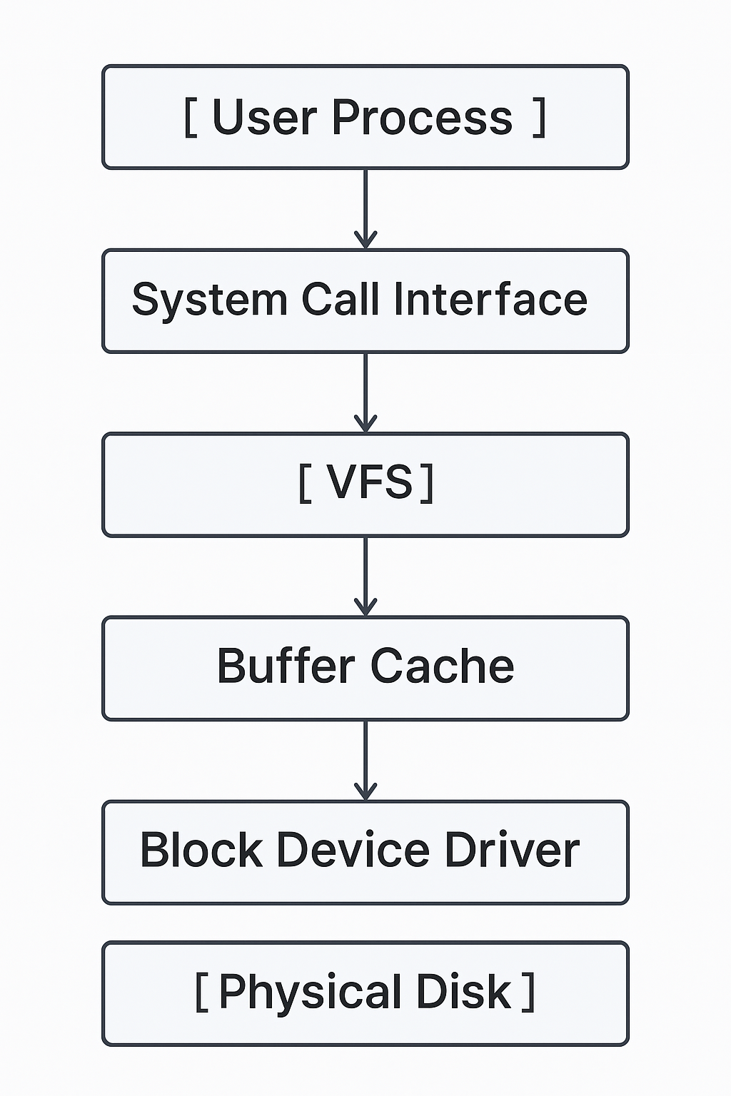 - 커널은 Block Device Driver만 관리하며, 세부 파일 구조는 VFS와 각 파일 시스템이 담당