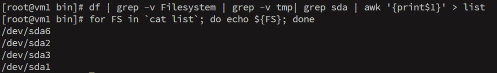 for 변수 in 리스트; do