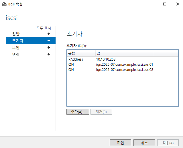 ISCSI를 2개 추가