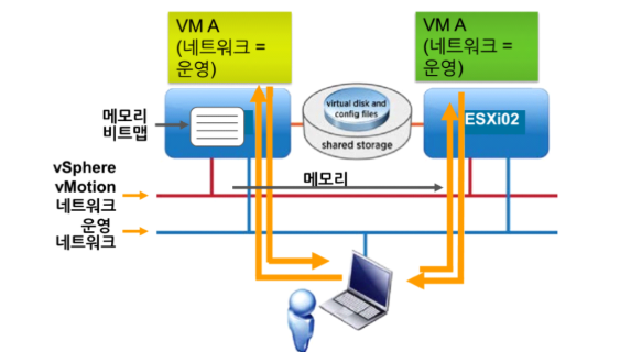 소스 호스트 및 대상 호스트는 가상 머신 파일이 저장되는 공유 데이터스토어에 액세스가 가능하다.