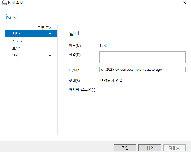 - 일반적으로 Target은 iqn.날짜.도메인:가상머신 형태로 식별