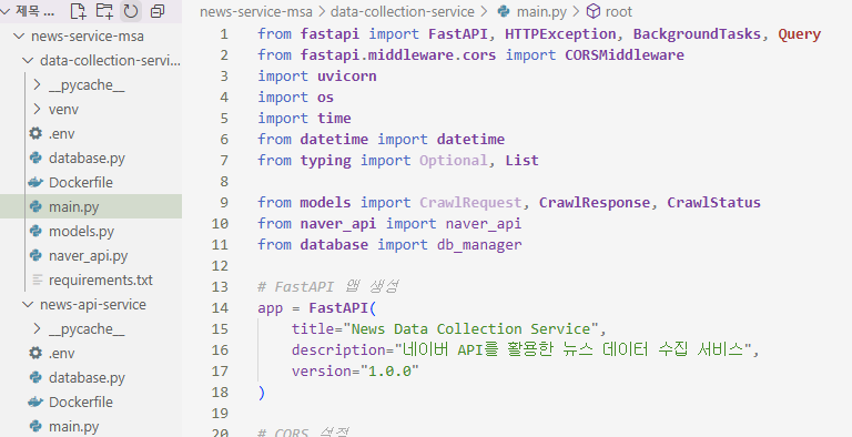 네이버 API로부터 데이터를 수집하고 DynamoDB에 저장하는 서비스와 DynamoDB에 저장된 데이터를 조회하는 서비스를 각각 FastAPI로 개발했다. 빠른 개발을 위해 Claude를 적극 활용하여 개발했다.