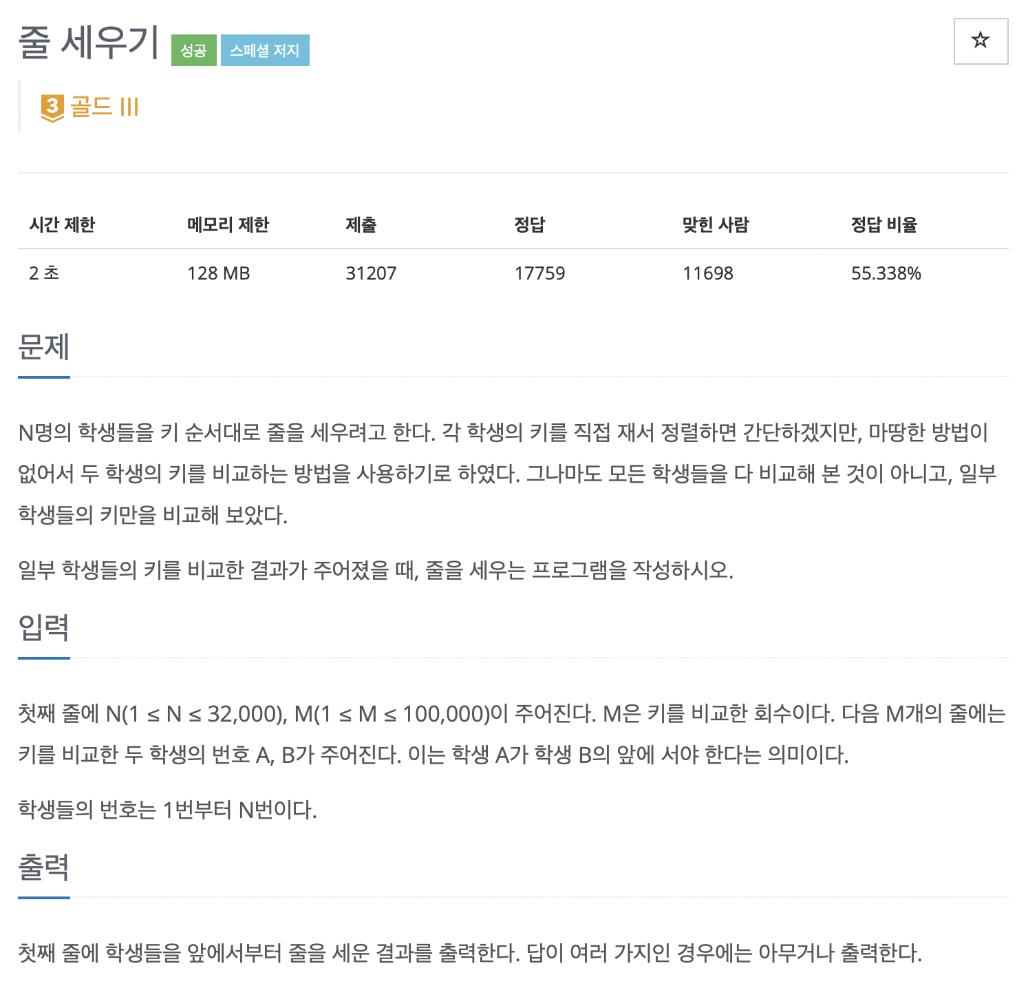 queue๊ฐ ๋น๋๊น์ง popํ ํ์์ ๋ฒํธ๋ฅผ ์ถ๋ ฅํ๊ณ ๊ทธ ํ์ ๋ค์์ผ๋ก ์ค์ ์ค ์ ์๋ ํ์์ in_degree๋ฅผ -1ํด์คฌ์ ๋ in_degree๊ฐ์ด 0์ด๋ผ๋ฉด queue์ pushํด์ค๋ค.