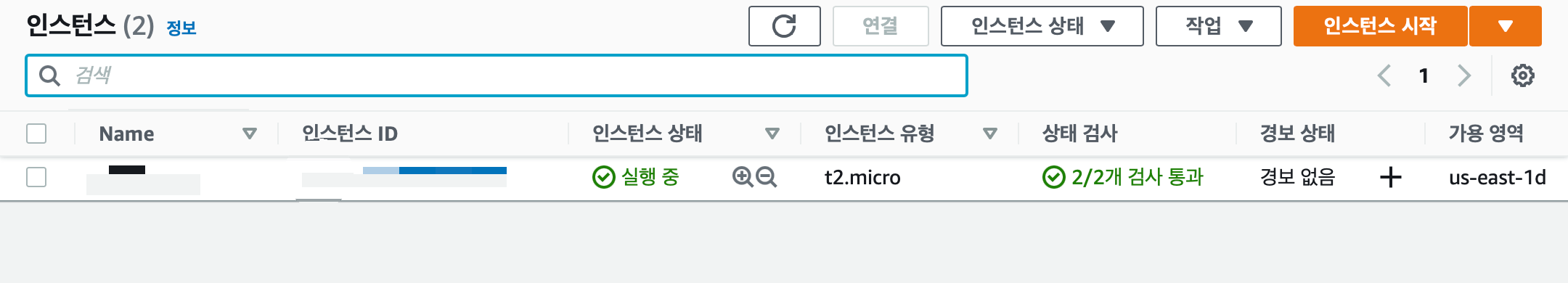 나머지 설정들은 기본 값으로 해두고 인스턴스 시작을 누르면 인스턴스가 정상적으로 생성된다.