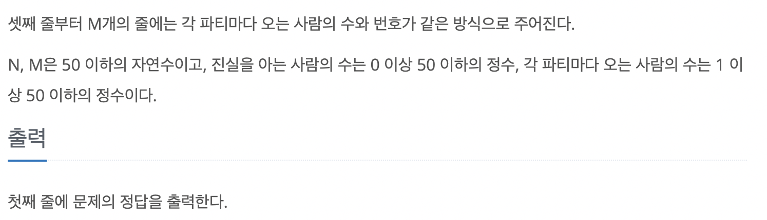 party_know[i] : iλ² νν°κ° μ§μ€μ λ§ν΄μΌ νλ νν°λ©΄ true, κ³Όμ₯ν΄μ λ§ν΄λ λλ νν°λ©΄ false