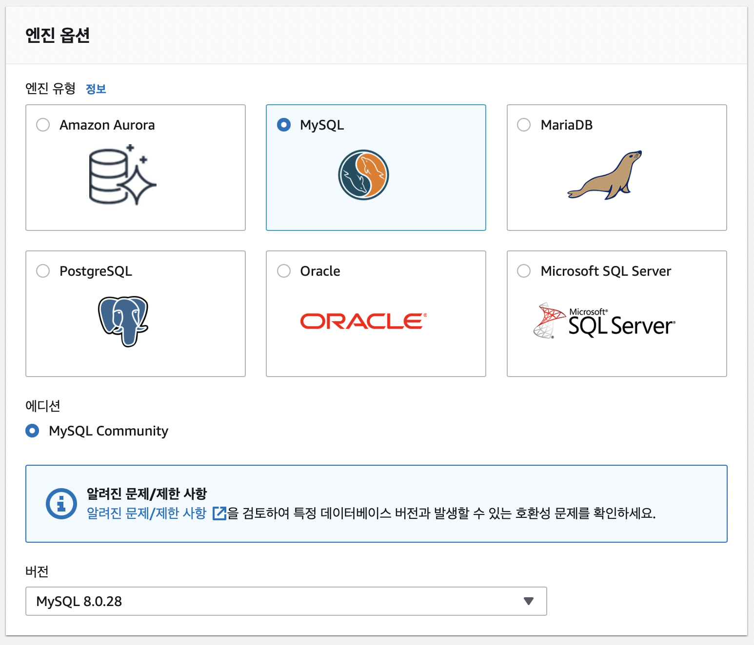 사용할 MySQL로 선택해주고 나머지는 기본값을 따른다.