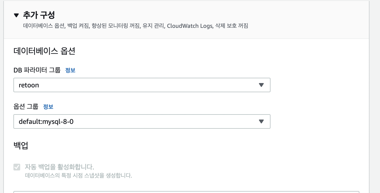 1-6. 데이터베이스 파라미터 그룹 변경