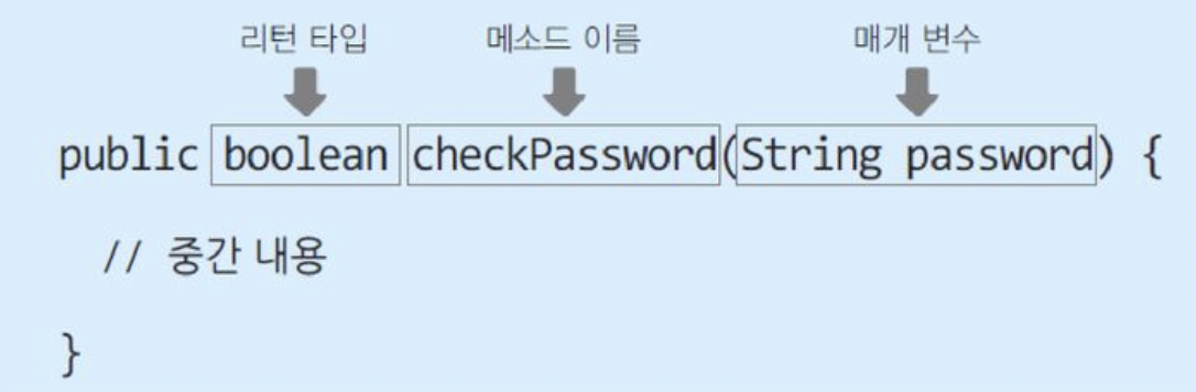 - 답 : 메소드는 클래스의 '행동'을 제공하는 역할을 수행한다.